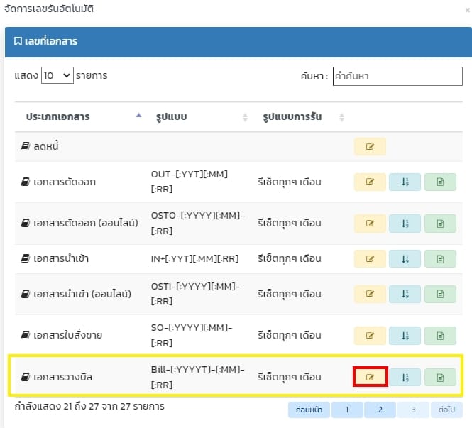 4.เอกสารใบวางบิล กดแก้ไข รูปแบบเลขที่ใบวางบิล