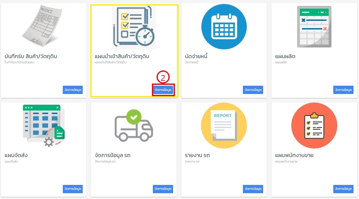 - แผนนำเข้าสินค้า/วัตถุดิบ จัดการข้อมูล