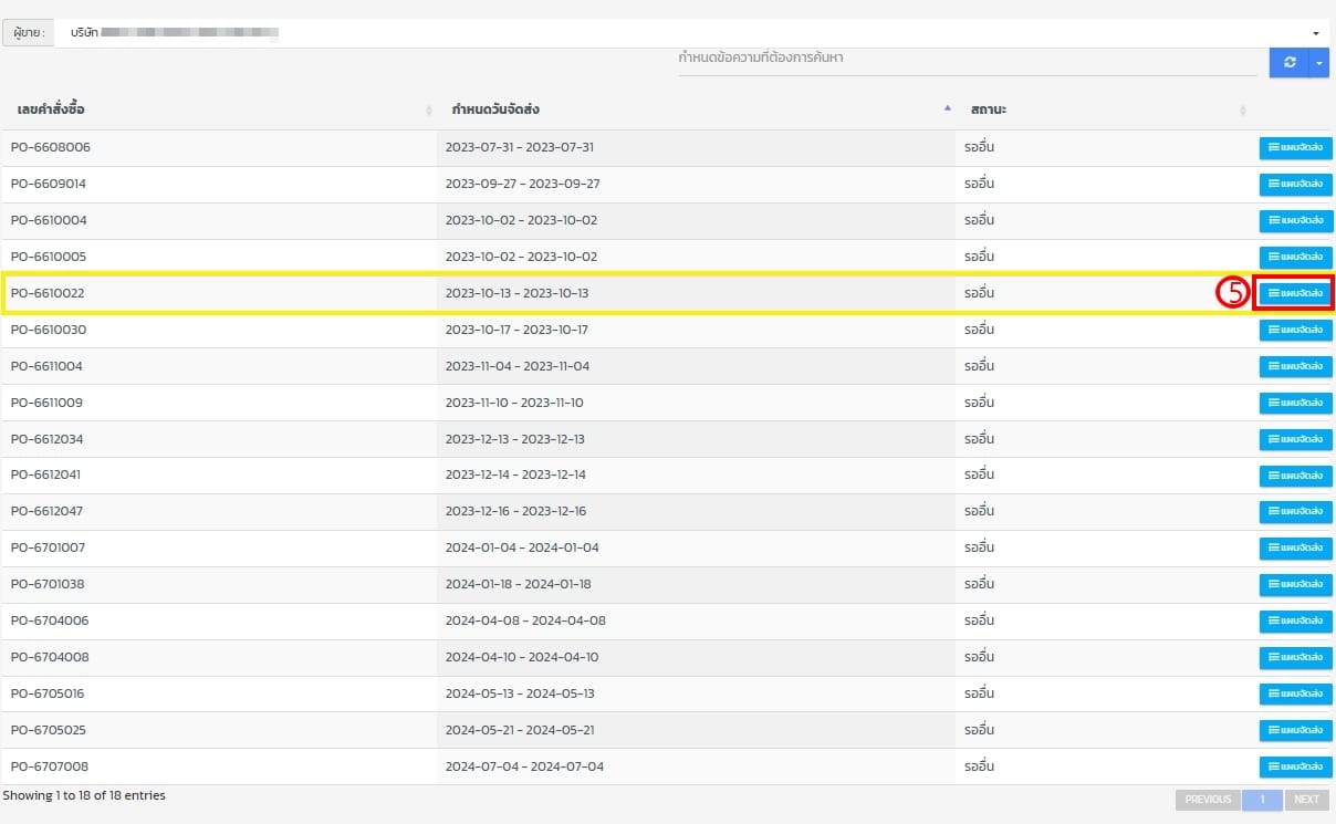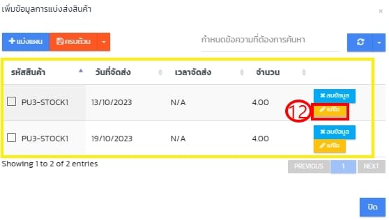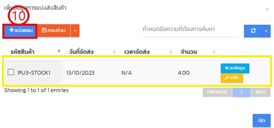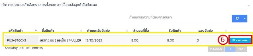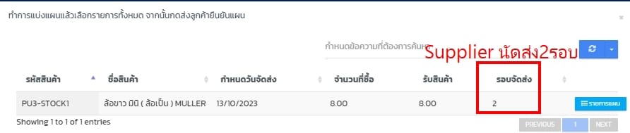 - ยังไม่มีแผนมาส่งสินค้าเพื่อรับเข้าสินค้า/วัตถุดิบ กดแบ่งแผน