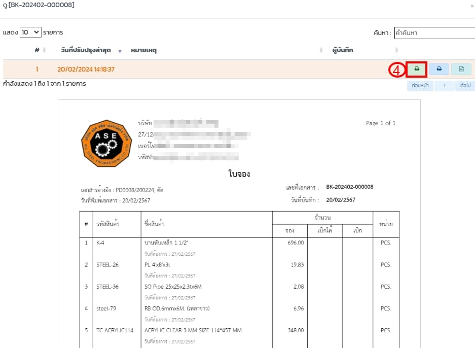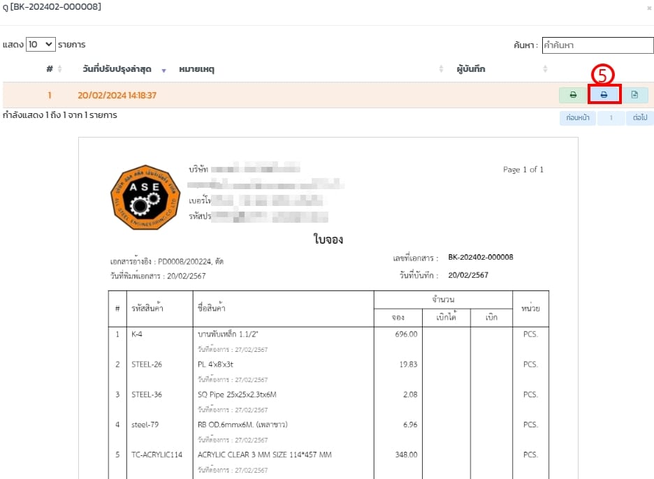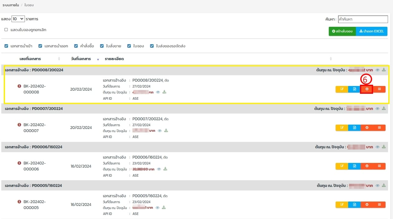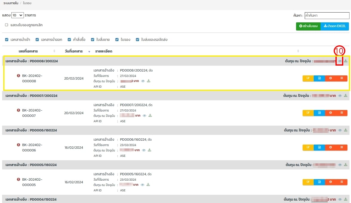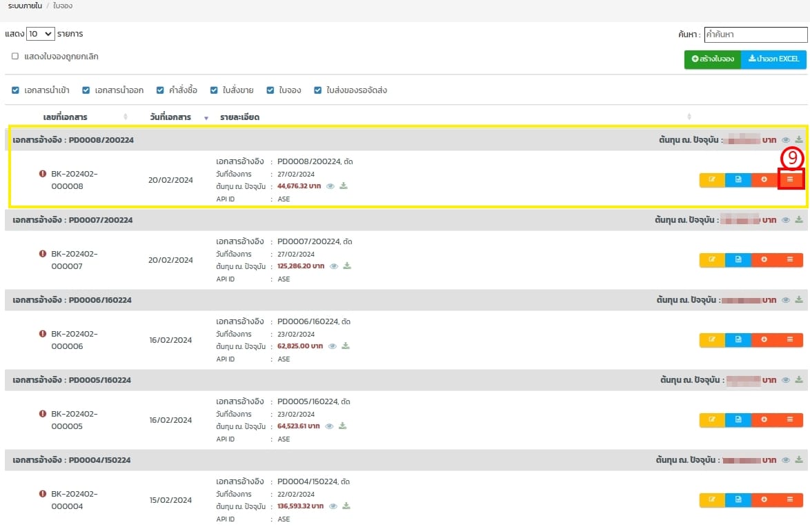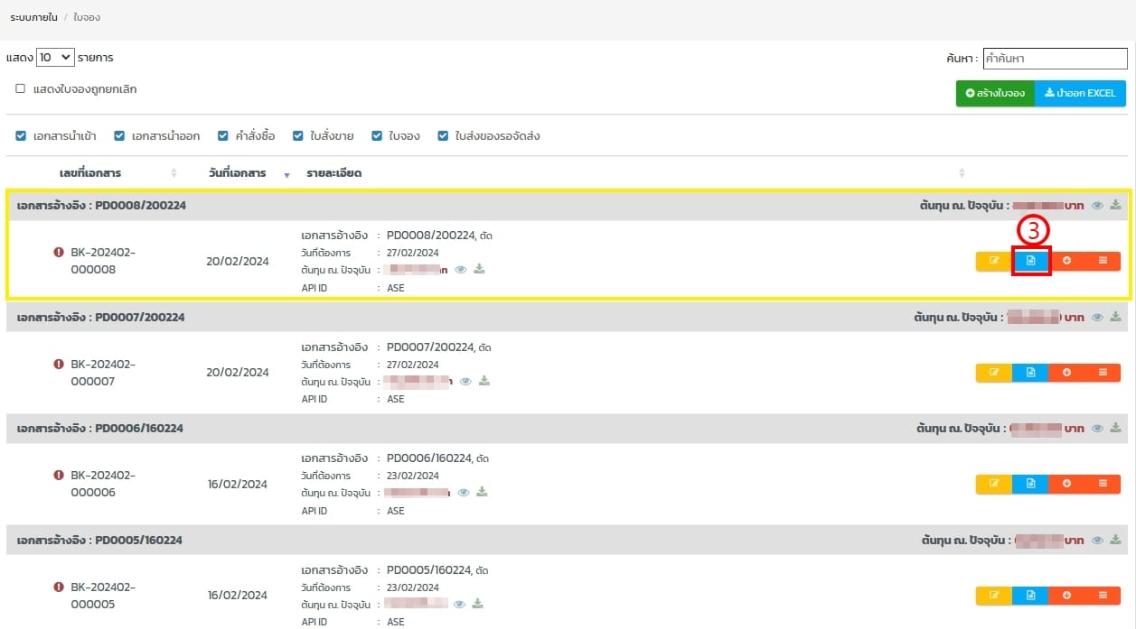 - เลือกรายการจอง ดูตามเอกสารอ้างอิงมาจากเลขที่ผลิต หรือ เลขที่ใบจอง BK แล้วกดดูใบจอง