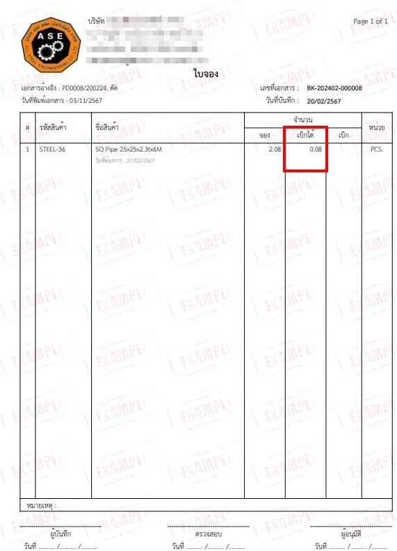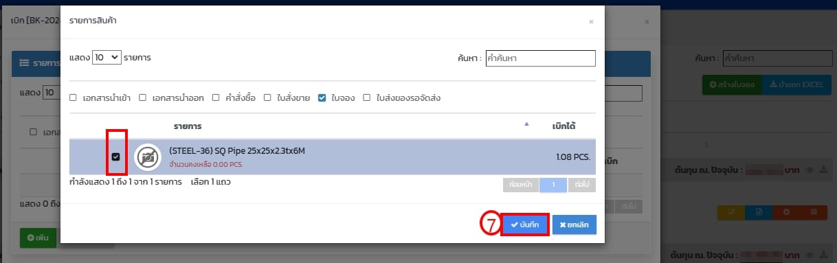 - เลือกรายการจอง ดูตามเอกสารอ้างอิงมาจากเลขที่ผลิต หรือ เลขที่ใบจอง BK