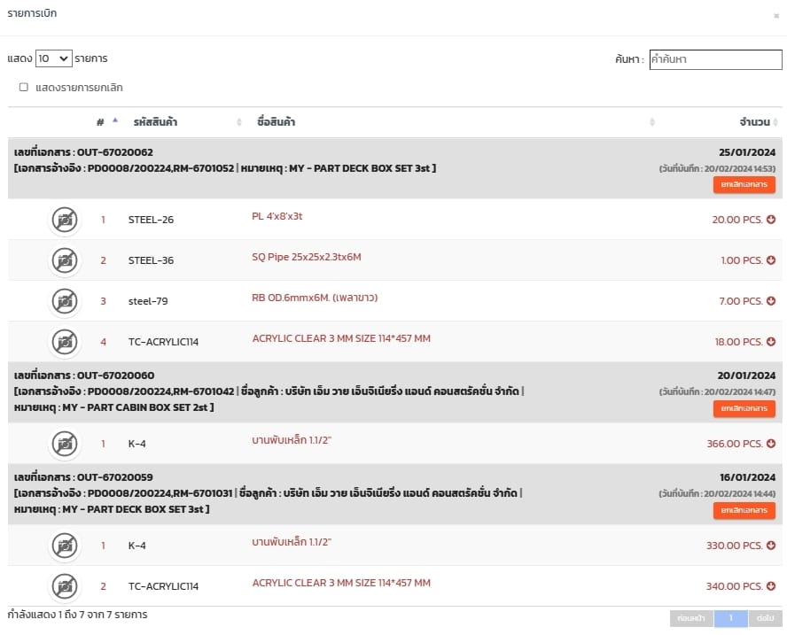 ใบจองวัตถุดิบ/จ่ายวัตถุดิบ (ข้อมูลส่งมาจากใบสั่งผลิต)