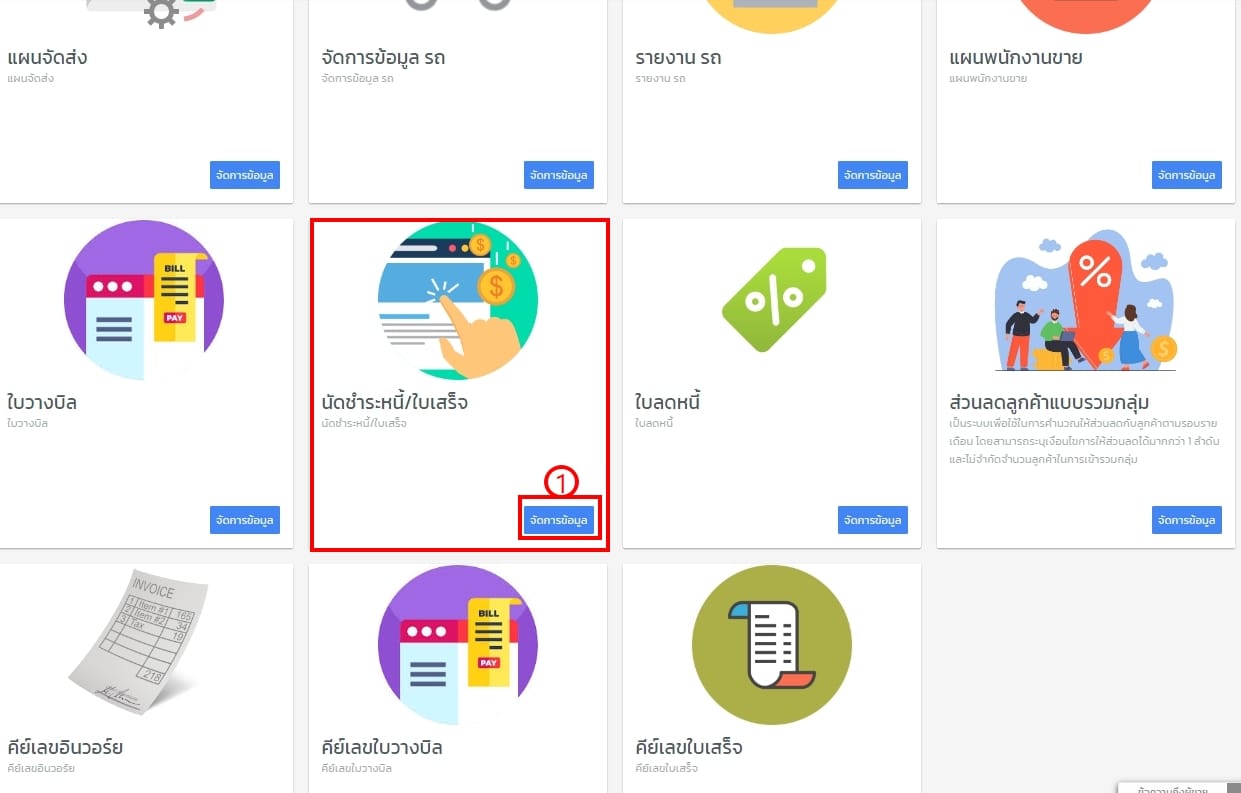1.เมนูนัดชำระหนี้/ใบเสร็จ