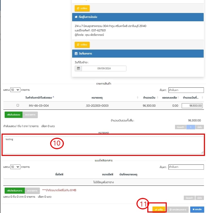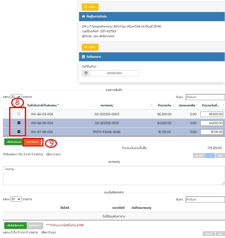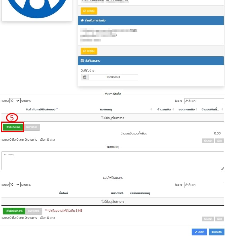 5.เพิ่มรายการใบสั่งของ/ใบกำกับภาษี ที่ออกใบวางบิลแล้ว
