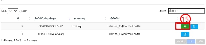 14.เลือกรายการใบเสร็จที่แก้ไขล่าสุด