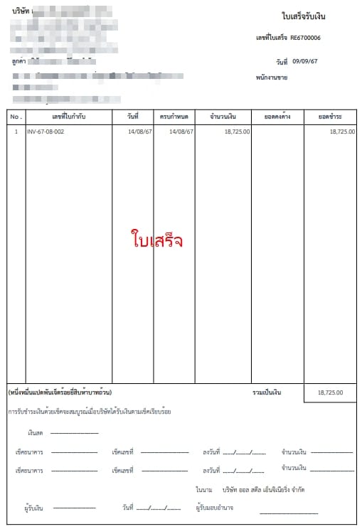 สร้างใบเสร็จและบันทึกเงินเข้าบัญชี