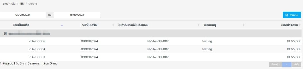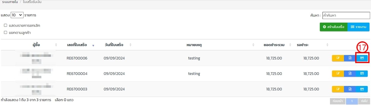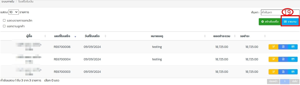 3.รายการใบเสร็จ กดสร้างใบเสร็จ