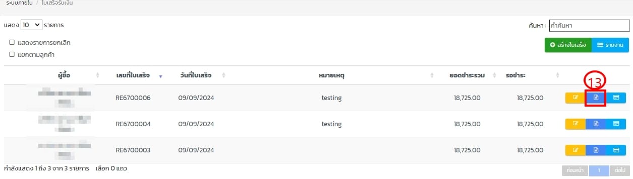 13.กดดูเอกสารใบเสร็จรับเงิน