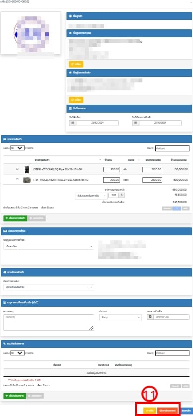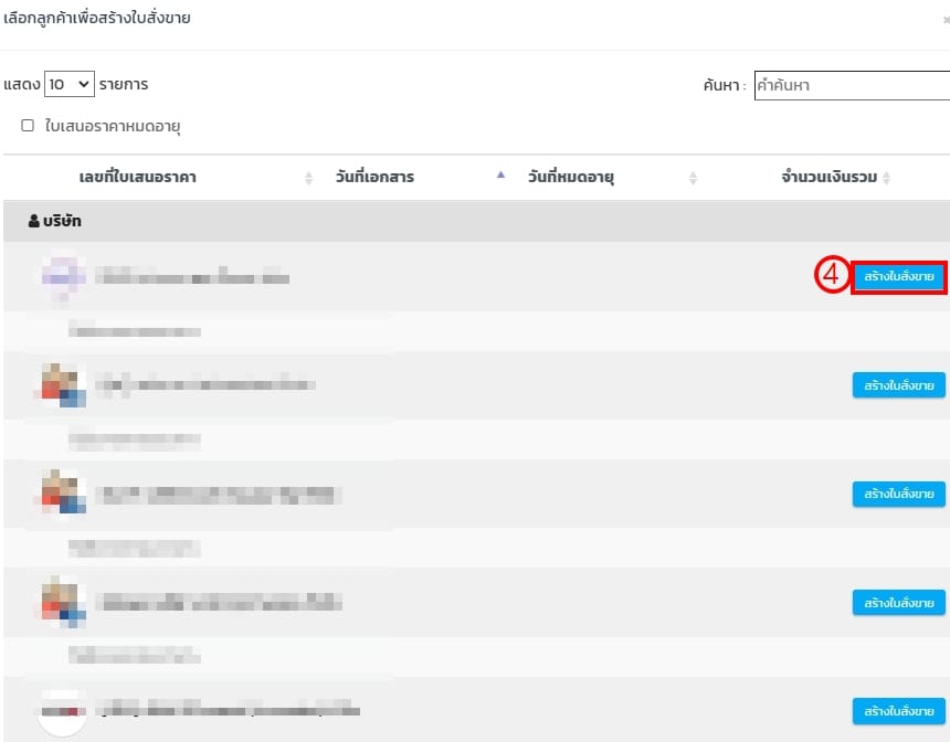 4.เลือกลูกค้า กดสร้างใบสังขาย