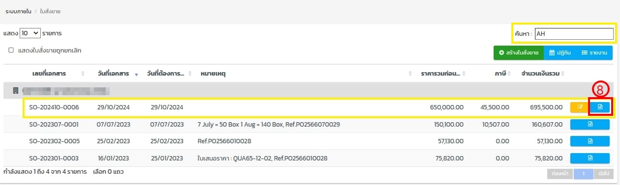 - พรีวิวหรือปริ้นเอกสารใบสั่งขาย