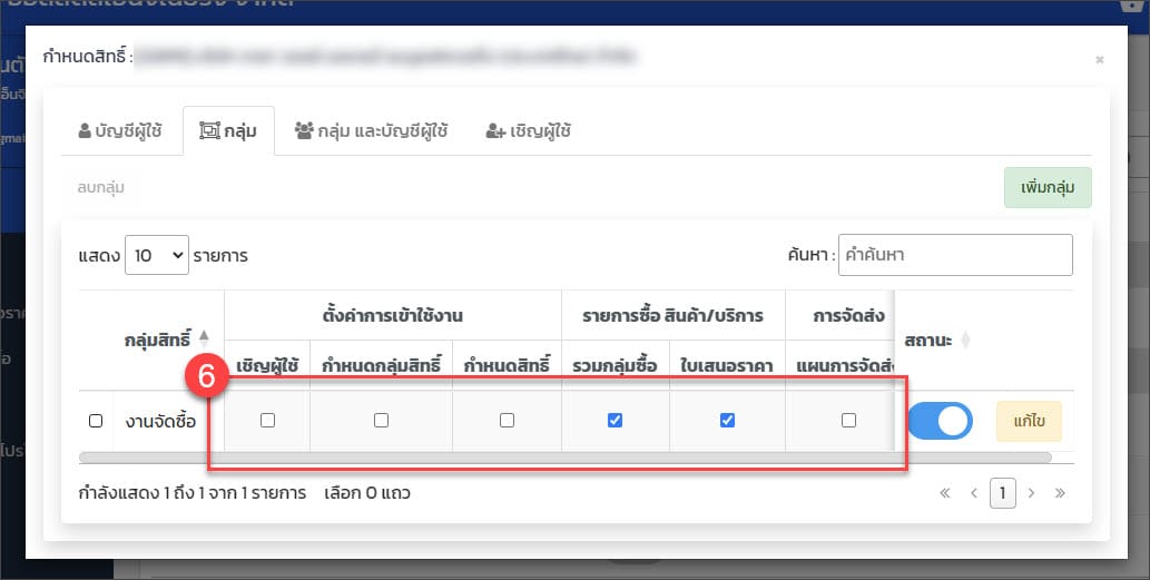 - กำหนดสิทธิ์ให้กลุ่ม โดยการติ๊กเลือกตามต้องการ