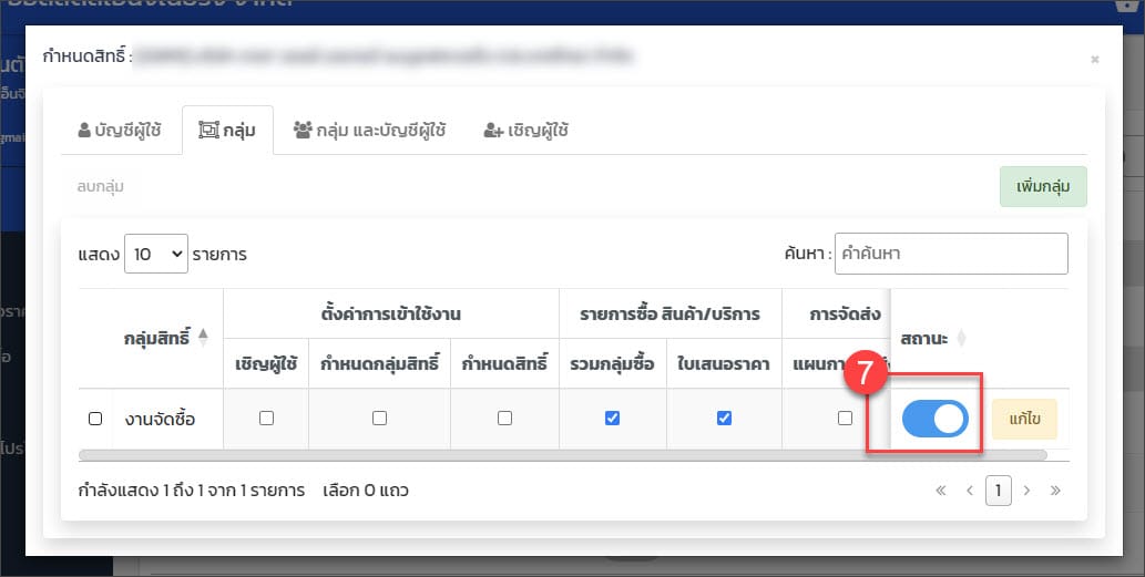 - สามารถปรับเปลี่ยนสถานะกลุ่มได้ (ปิด/เปิด การใช้งาน)