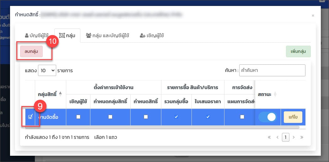 - ติ๊กเลือกรายการกลุ่มที่ต้องการลบ
