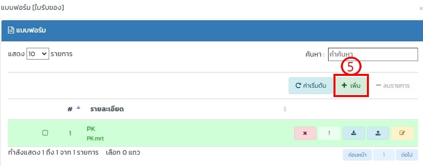 ตั้งค่าเลขใบรับสินค้า/วัตถุดิบและฟอร์ม