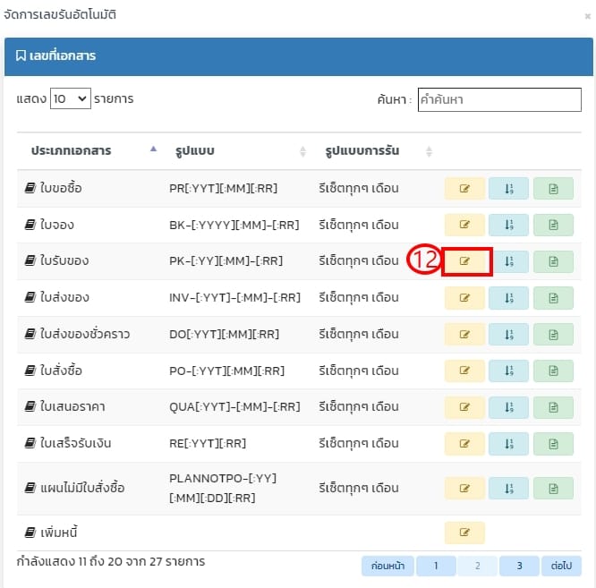 12.แก้ไขรูปแบบเลขที่ใบรับของ