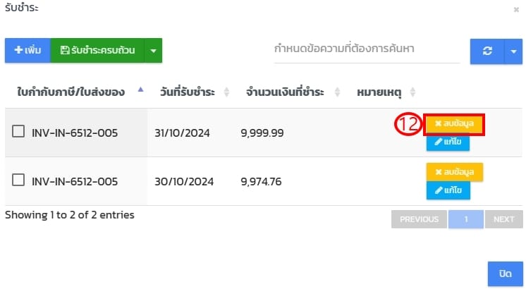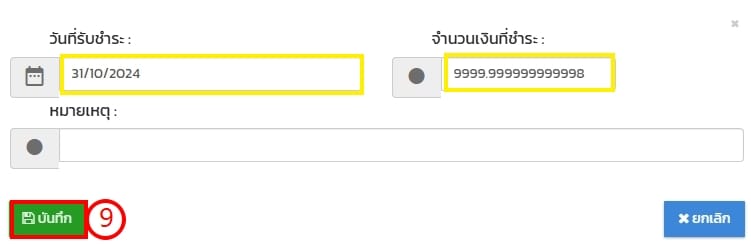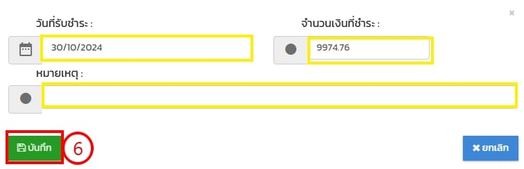 - กลับมาบันทึกการชำระ เมื่อได้มีการจ่ายเงินลูกค้าแล้ว