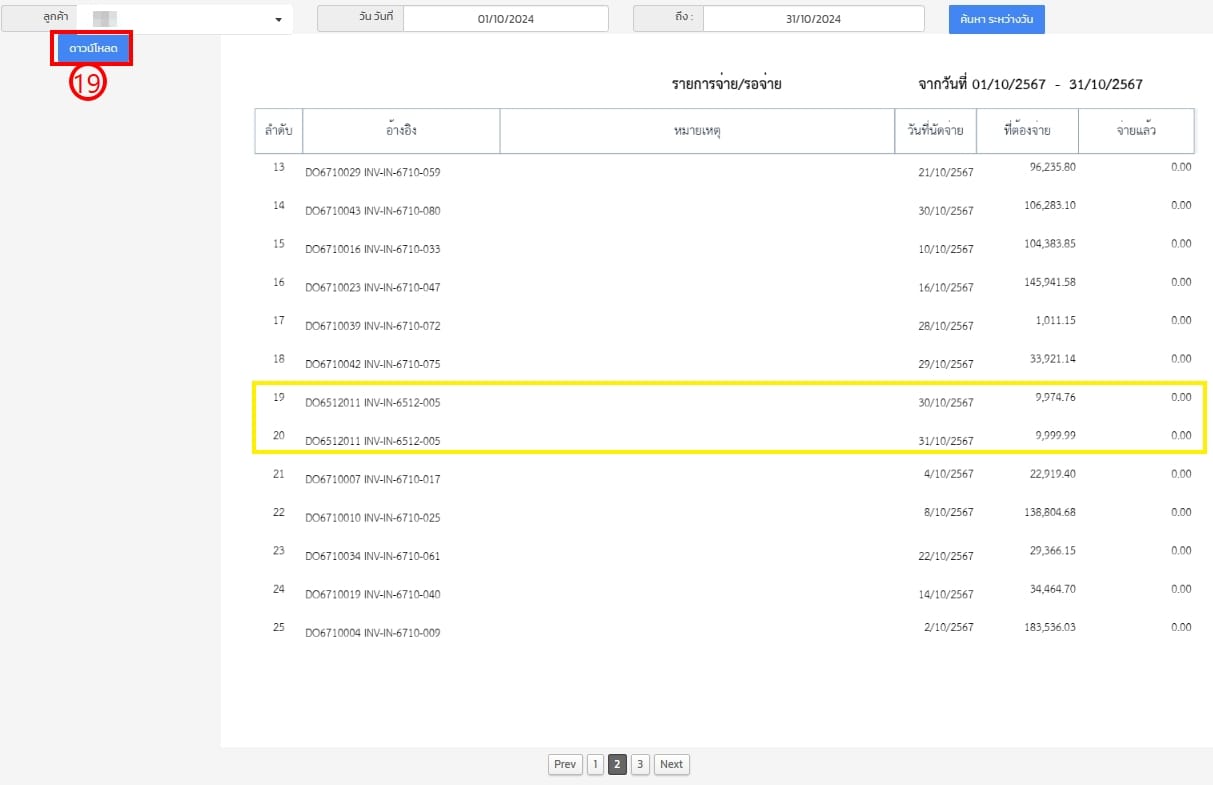 จะเห็นรายการที่จ่ายเงินให้กับลูกค้าแล้ว สามารถ ดาวน์โหลดนำไปปริ้น