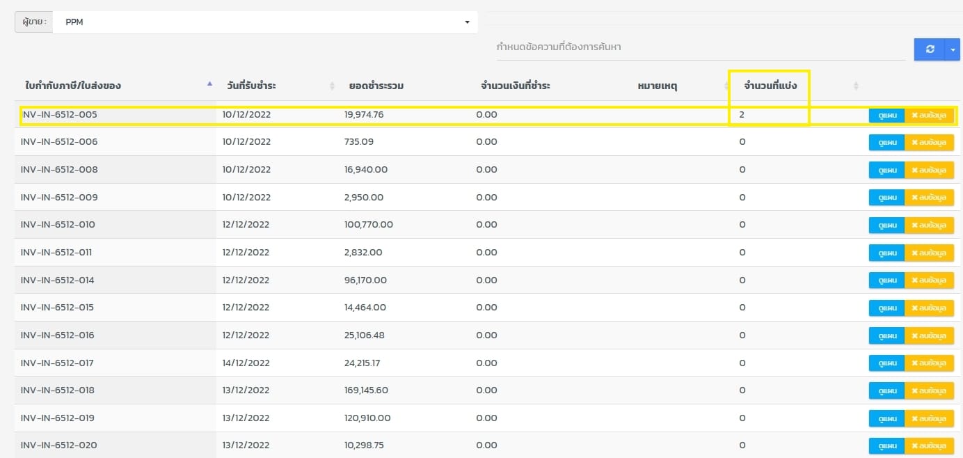 - กดปิด จะเห็นรายการ มีจำนวนแบ่ง2ครั้ง
