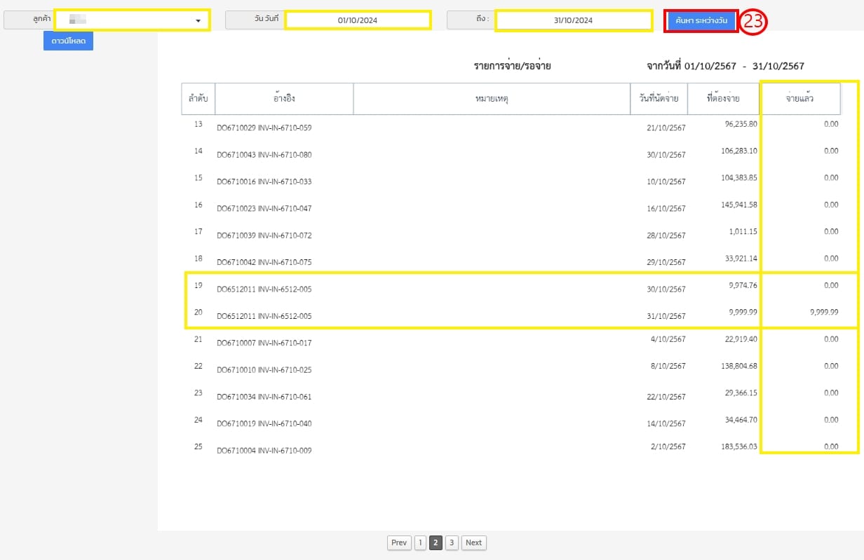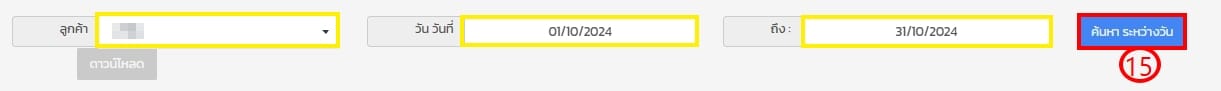 - เลือกลูกค้า เลือกวันที่ กดค้นหาระว่างวัน