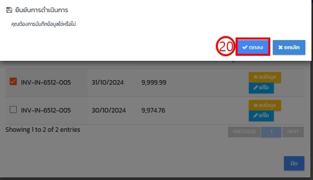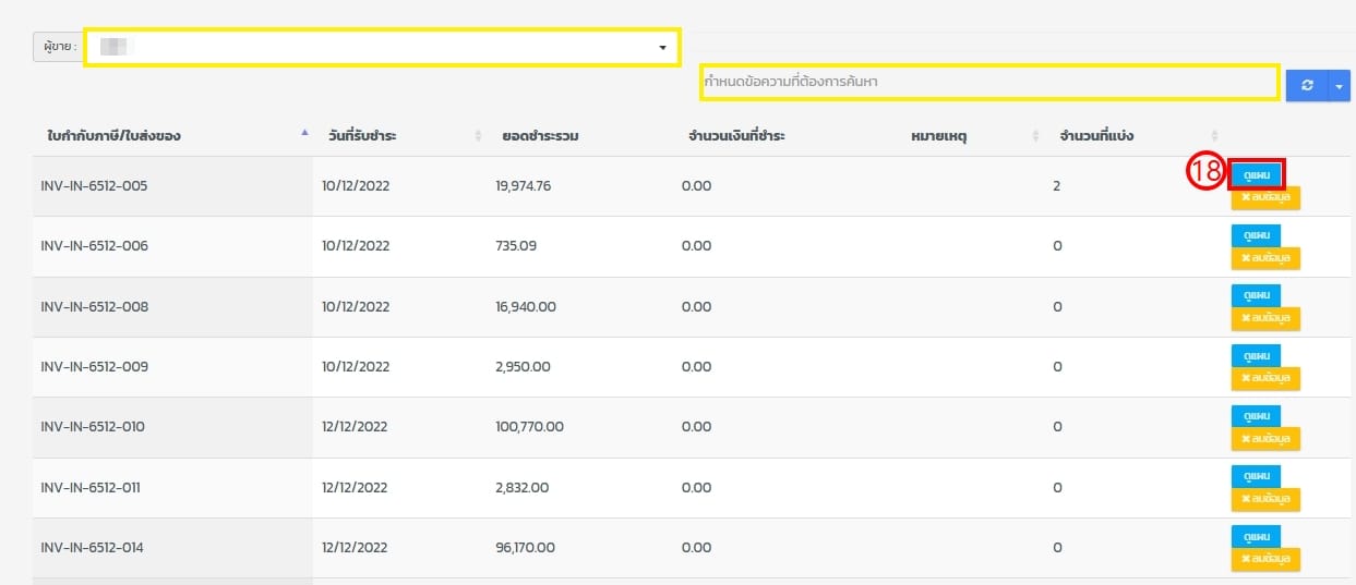 - เลือกลูกค้า หรือค้นหา Invoice ที่รับของเข้า