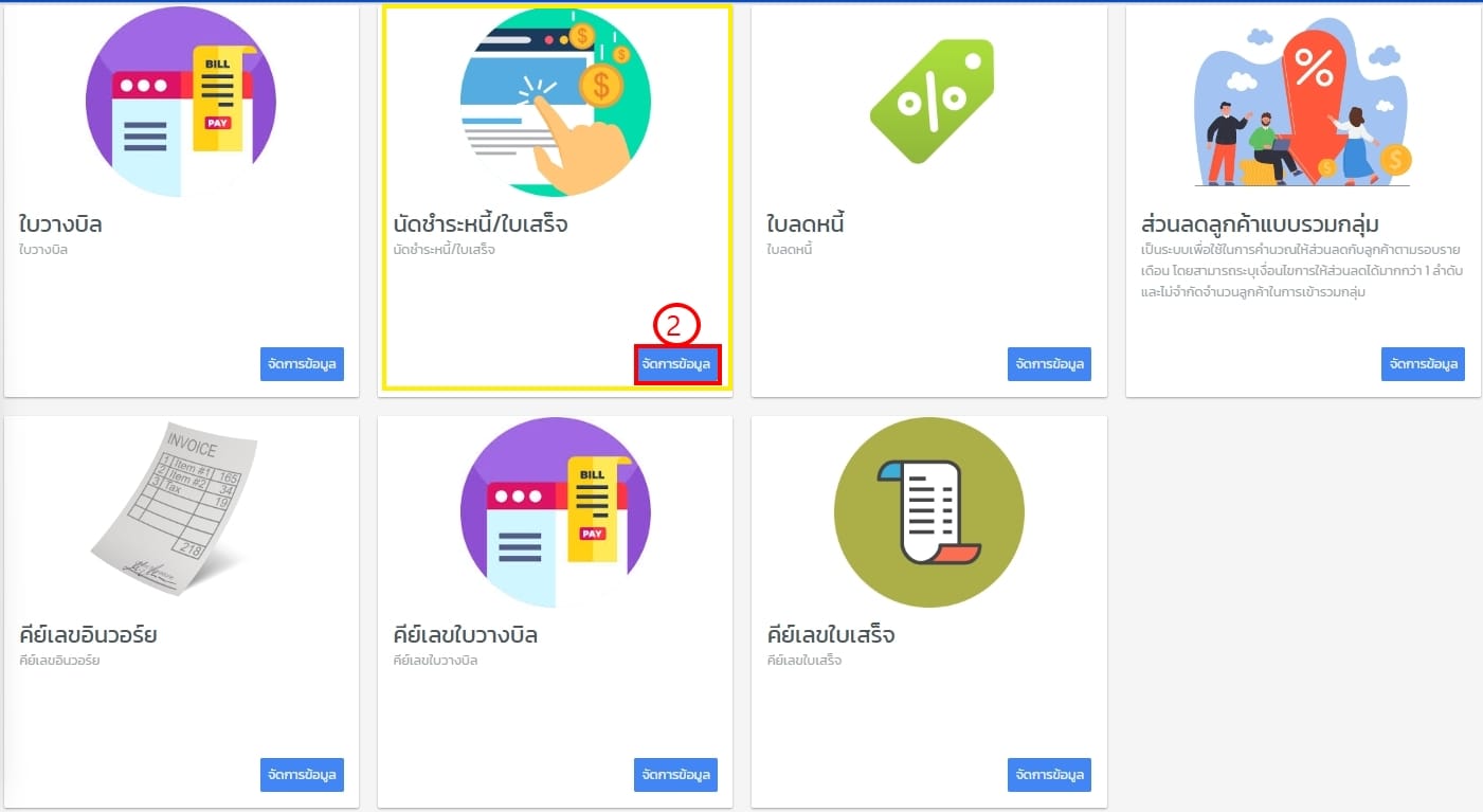 - นัดชำระหนี้/ใบเสร็จ จัดการข้อมูล