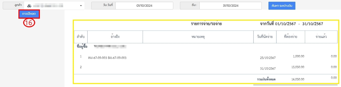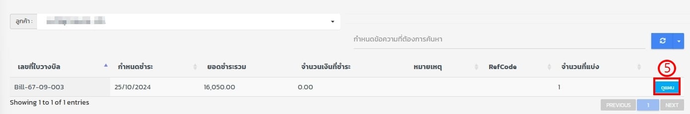 - เลือกใบวางบิลที่นัดชำระหนี้ กดดูแผน