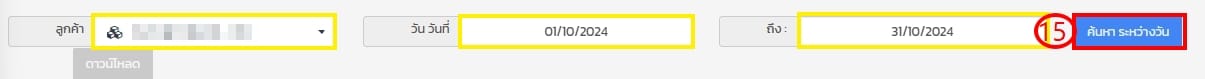 - เลือกลูกค้า(ไม่เลือกก็ได้ ข้อมูลจะออกมาลูกค้าทั้งหมด) และวันที่1-31 ของเดือน