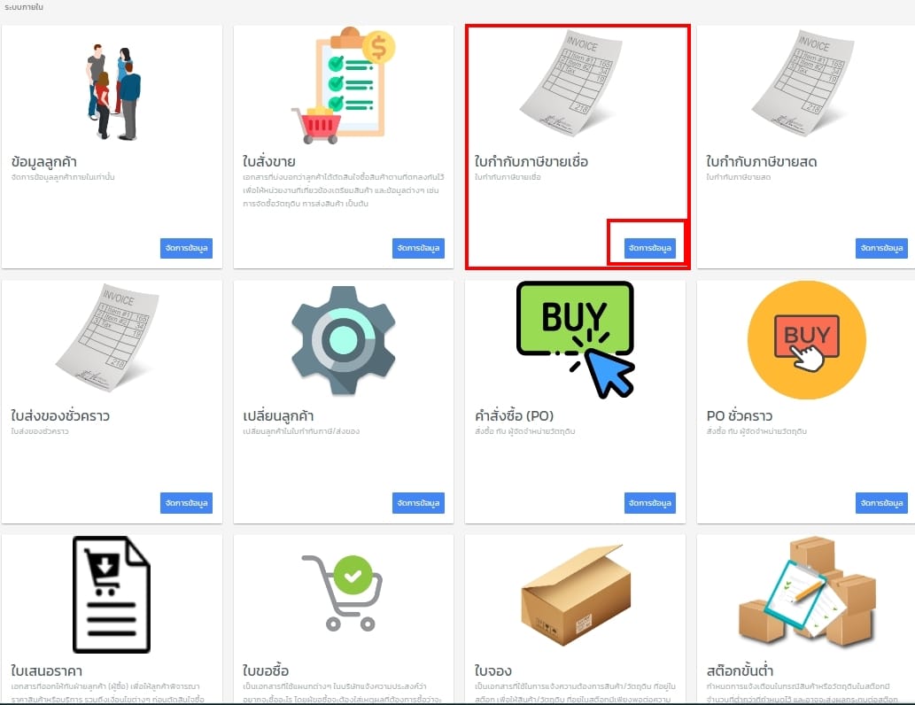 - คลิ๊กจัดการข้อมูล ใบกำกับภาษีขายเชื่อ