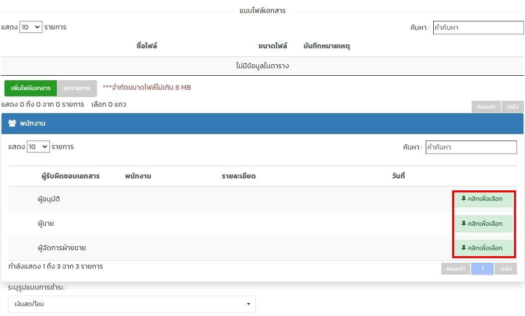 - เลือกข้อมูลพนักงาน ผู้อนุมัติ ผู้ขาย ผู้จัดการ ถ้าไม่ใส่ รายงานการขายของผู้ขายจะไม่มี
