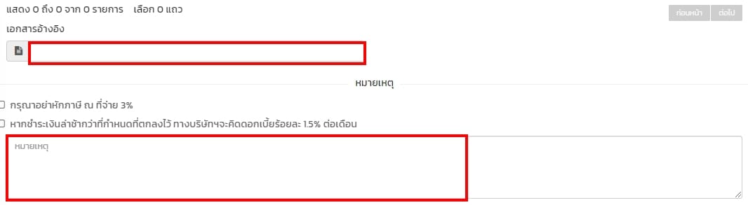 - ใส่เลขเอกสารอ้างอิงจาก PO และ ใส่หมายเหตุ