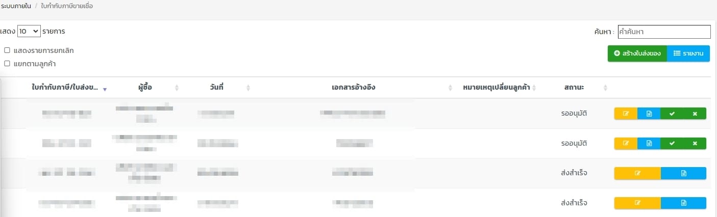 - สามารถ กดแก้ไข, ดูใบกำกับภาษี, อนุมัติ, ไม่อนุมัติ