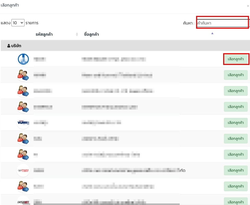 - พิมพ์ค้นหาลูกค้า เลือกลูกค้า