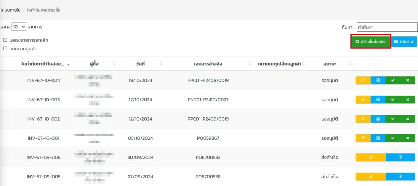 - แสดงหน้ารายการ กดสร้างใบส่งของ