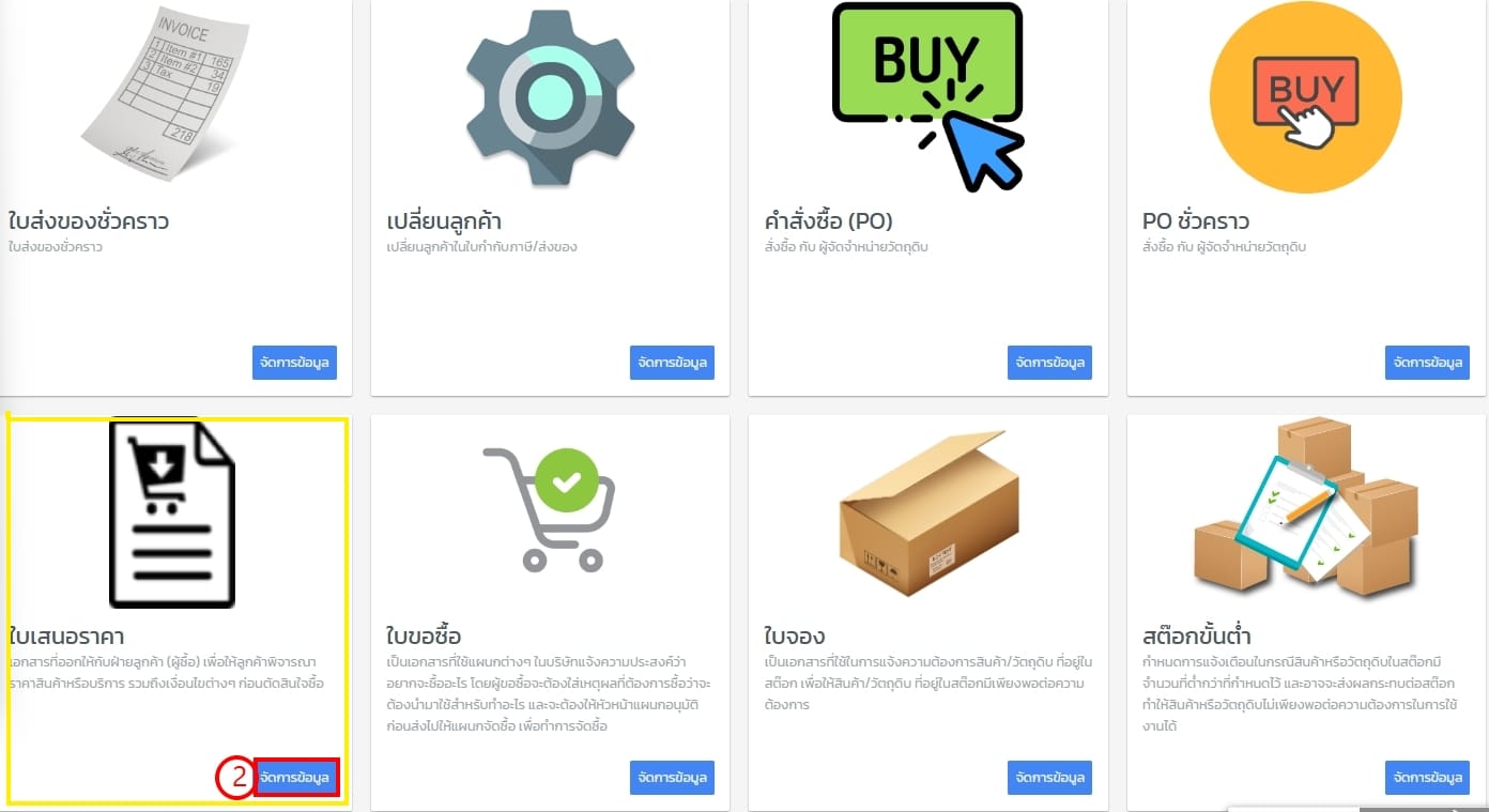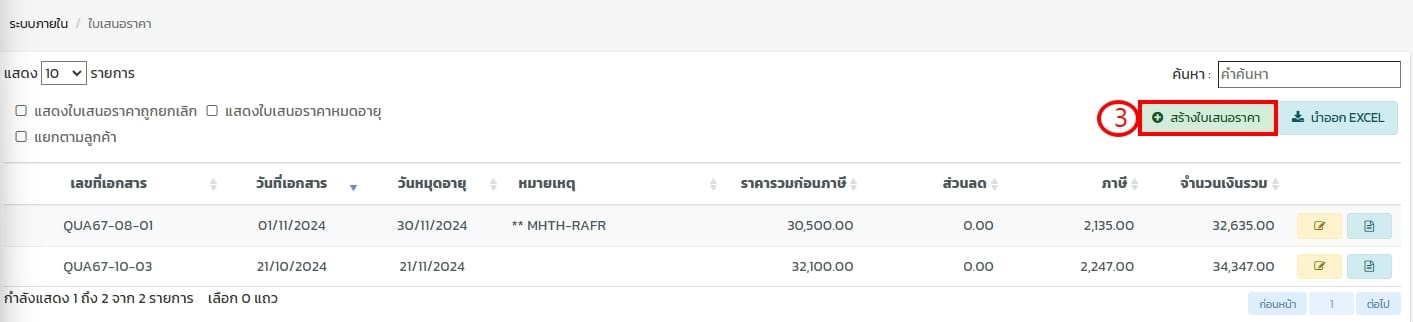 - ตกลง จะแสดงรายการใบเสนอราคา