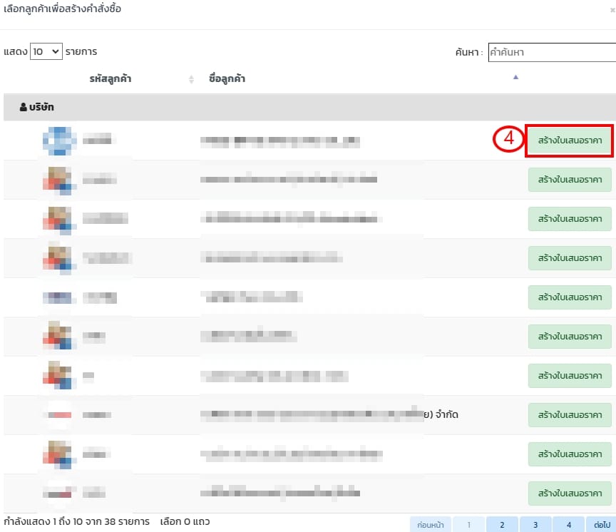 - เลือกลูกค้า เสร้างใบเสนอราคา