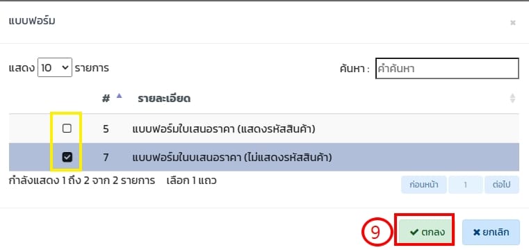 - สามารถเลือกฟอร์มใบเสนอราคาได้ แล้วตกลง