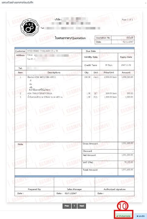- แสดงพรีวิวใบเสนอราคาให้ดู กดดำเนินการต่อ