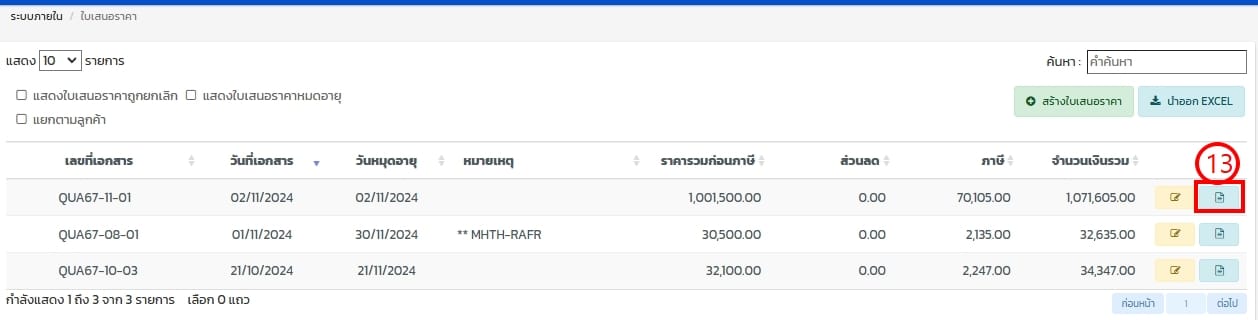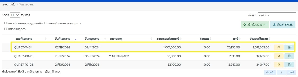- สามราถแสดงรายการใบเสนอราคานั้นๆ