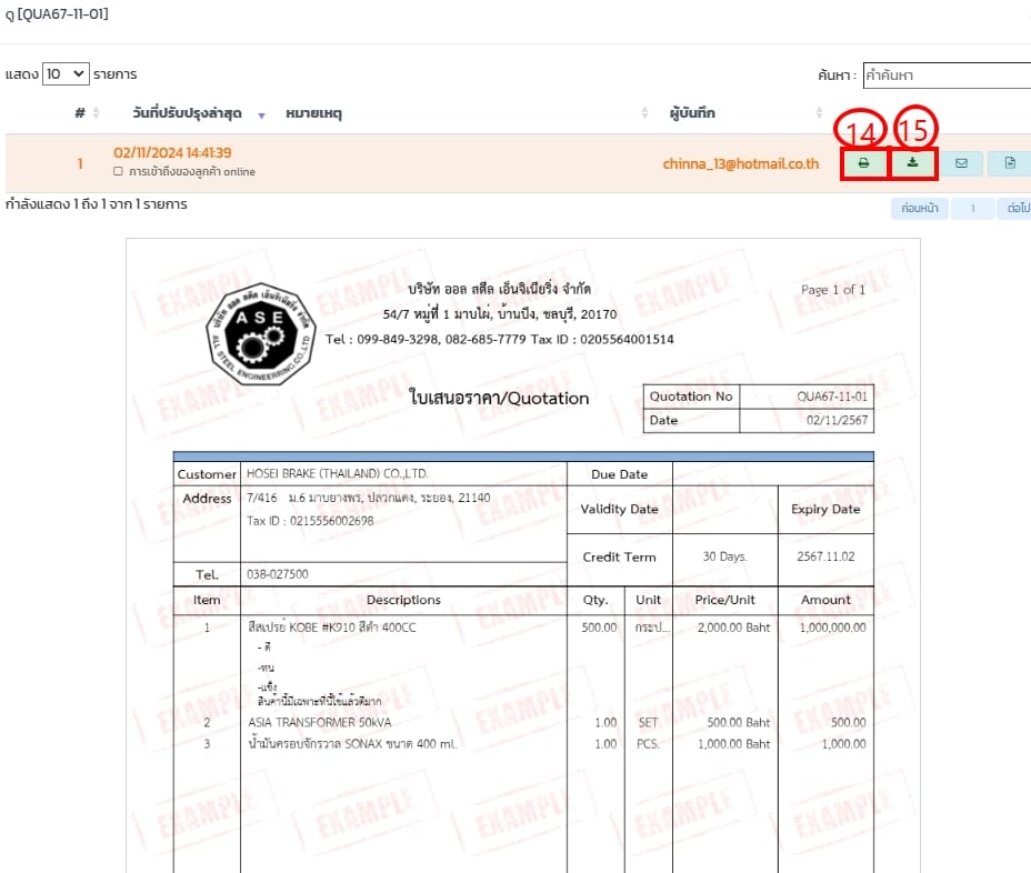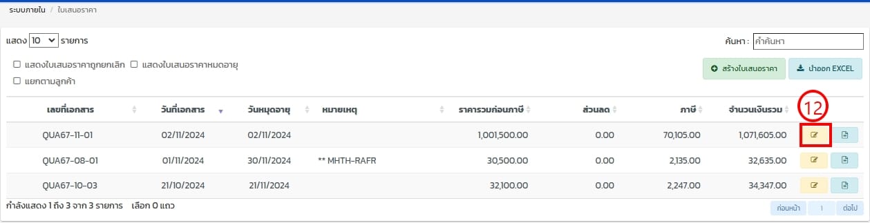 - สามารถเข้ามาแก้ไข หรือ ยกเลิกใบเสนอราคา