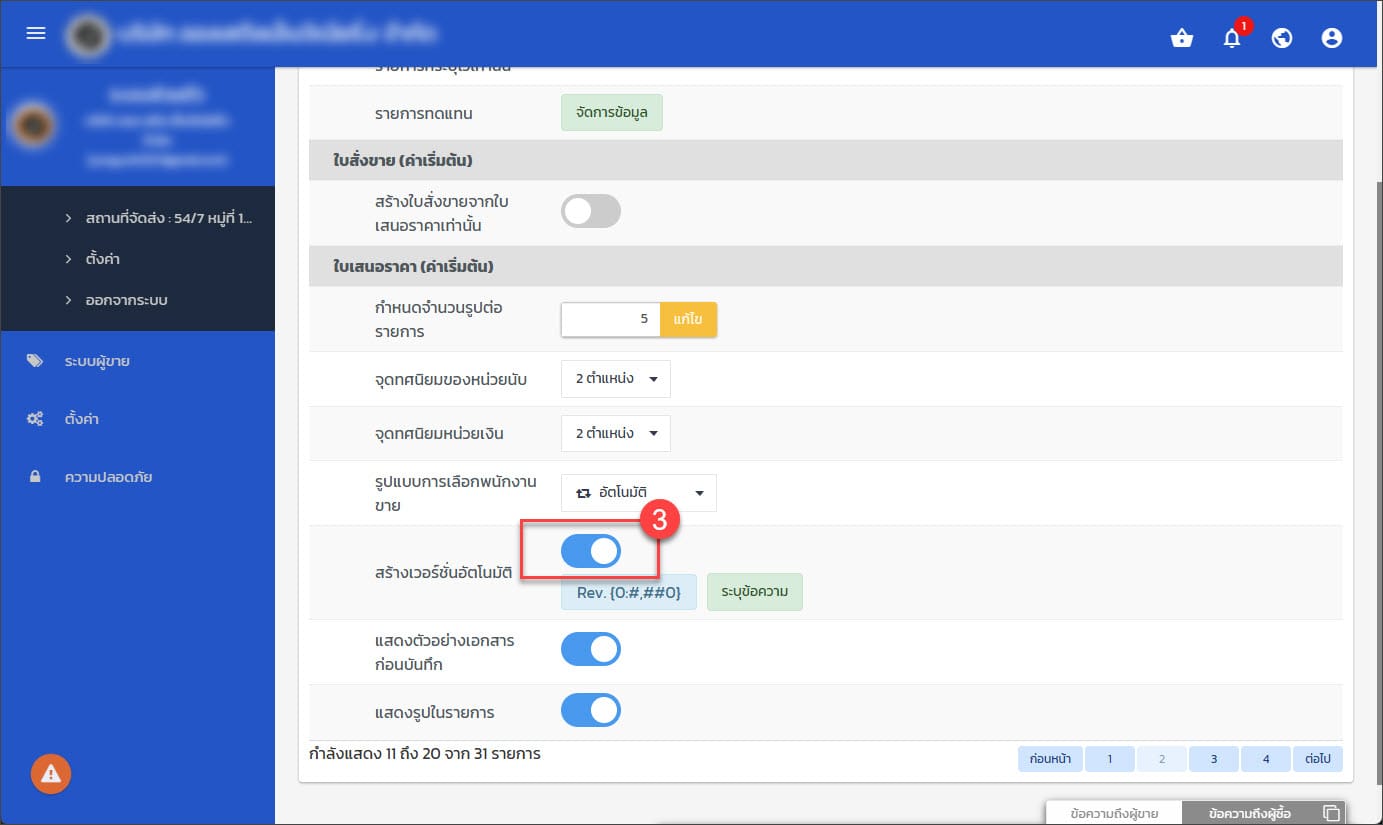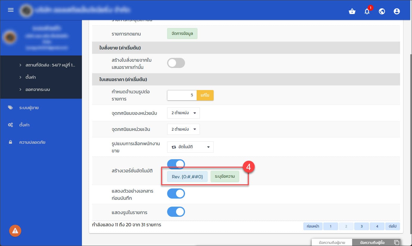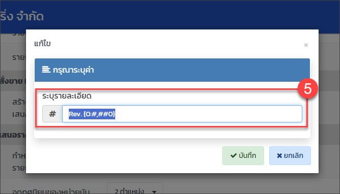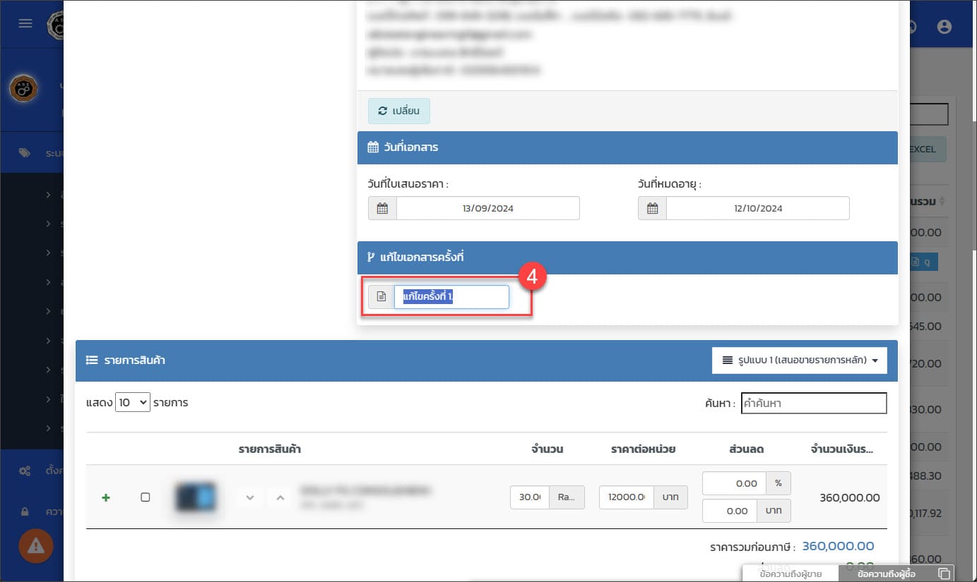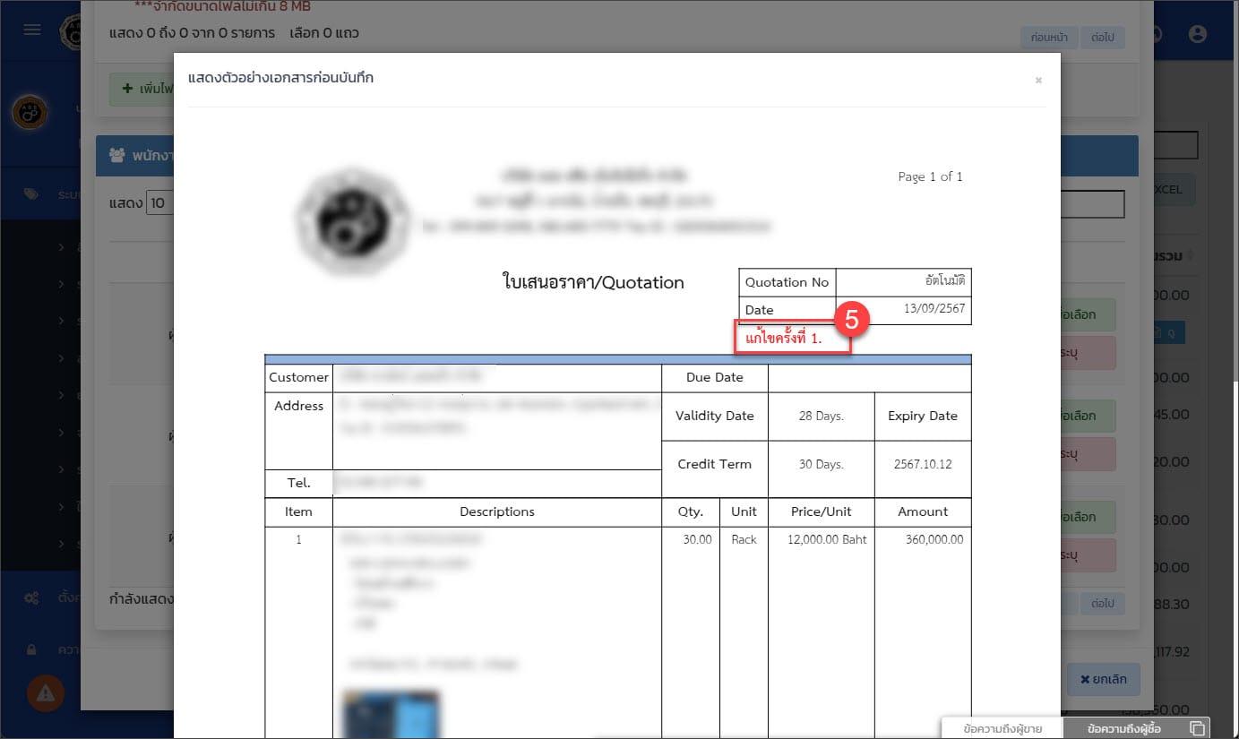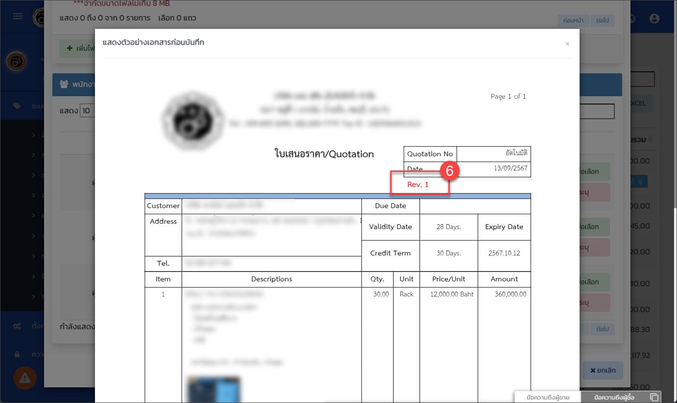- เมื่อผู้ใช้แก้ไขเอกสารใบเสนอราคา ระบบก็จะสร้างหมายเลขเอกสารตามที่ตั้งไว้ในระบบ