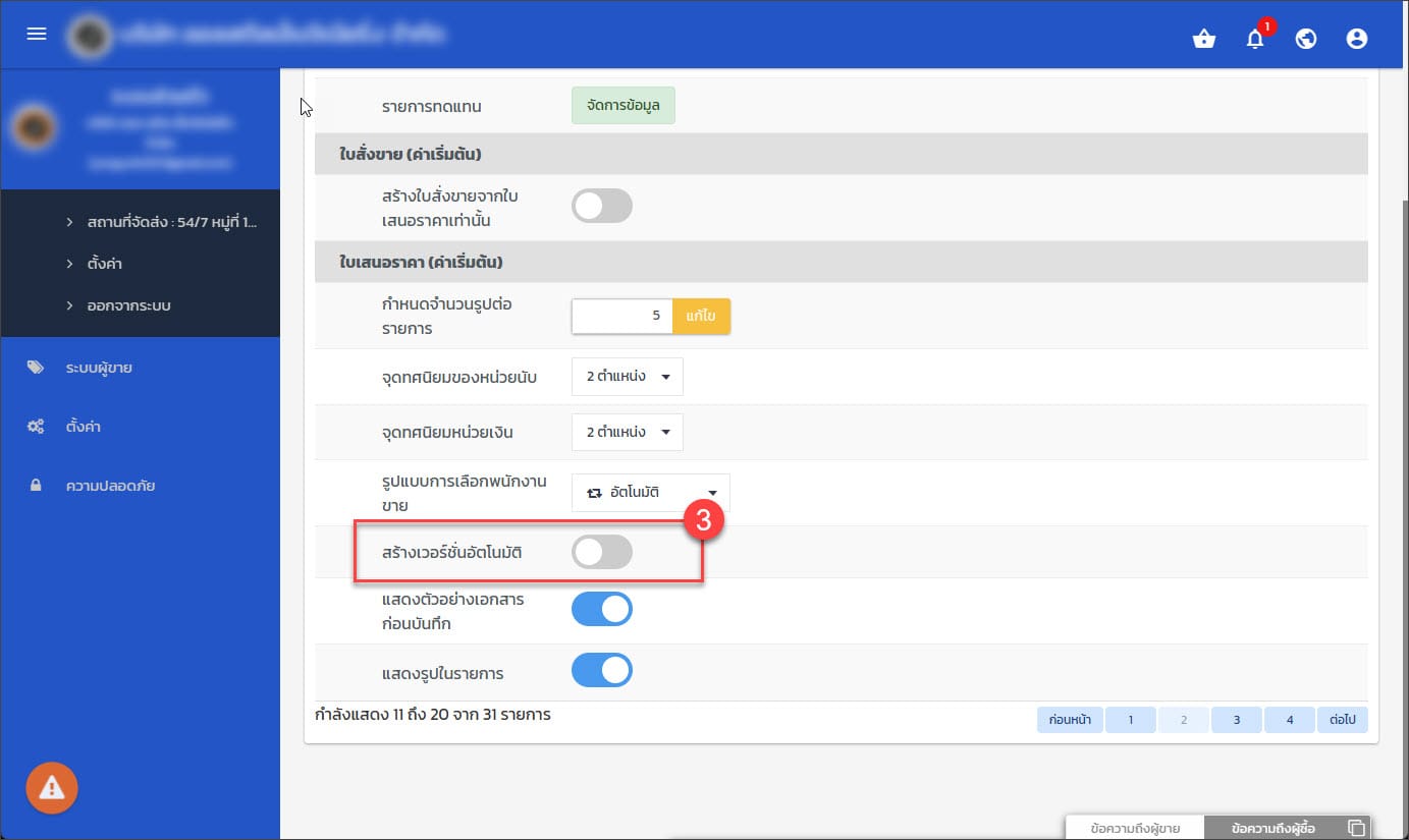 สร้างเวอร์ชั่น เอกสารใบเสนอราคา