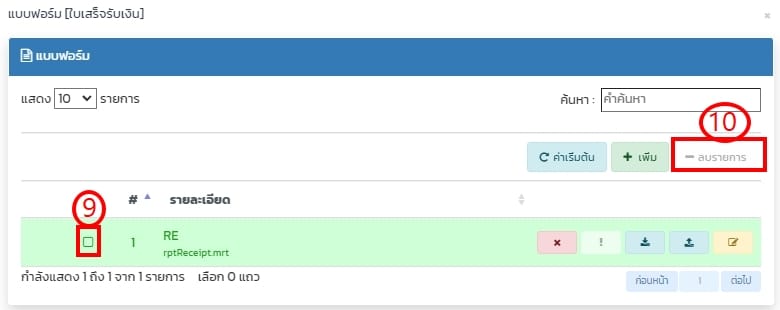 9.ลบรายการ เลือกรายการใบเสร็จรับ 10.สามารถกดลบรายการ