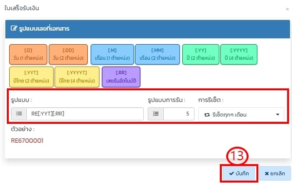 13.ใส่รูปแบบเลขที่เอกสาร กดบันทึก