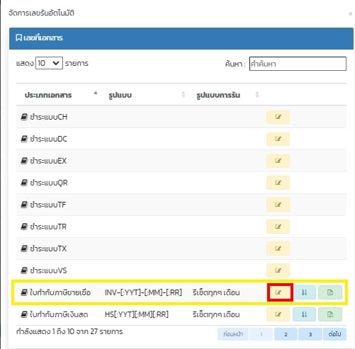 4.รายการใบกำกับภาษี กดแก้ไข รูปแบบเลขที่ใบกำกับภาษี