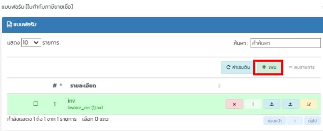 6.รายการใบกำกับภาษี กดเพื่อเพิ่มฟอร์มใบกำกับภาษี