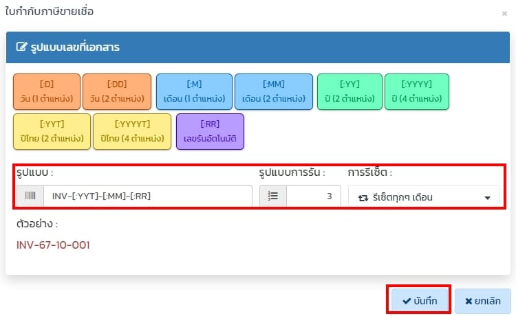 ตั้งค่าเลขใบกำกับภาษีขายเชื่อและฟอร์ม