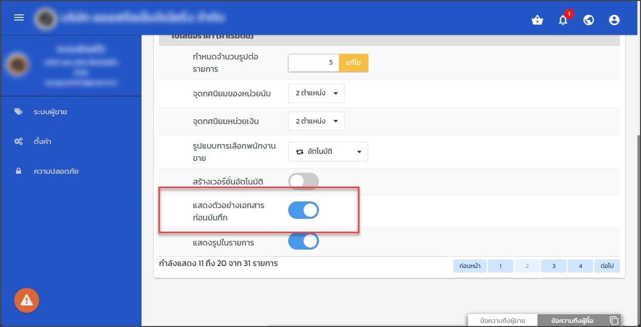 - เปิดใช้งานที่เมนู "แสดงตัวอย่างเอกสารก่อนบันทึก"